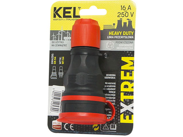 Gniazdo 16A 250V IP54, czarno-czerwona; GN54