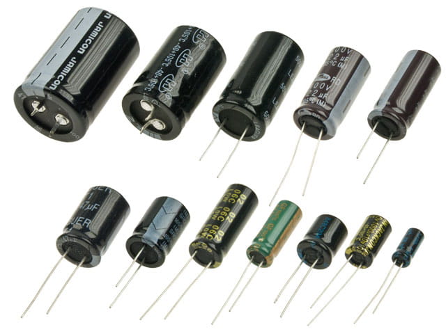 Kondensator elektrolityczny pionowy, niskoimpedancyjny.