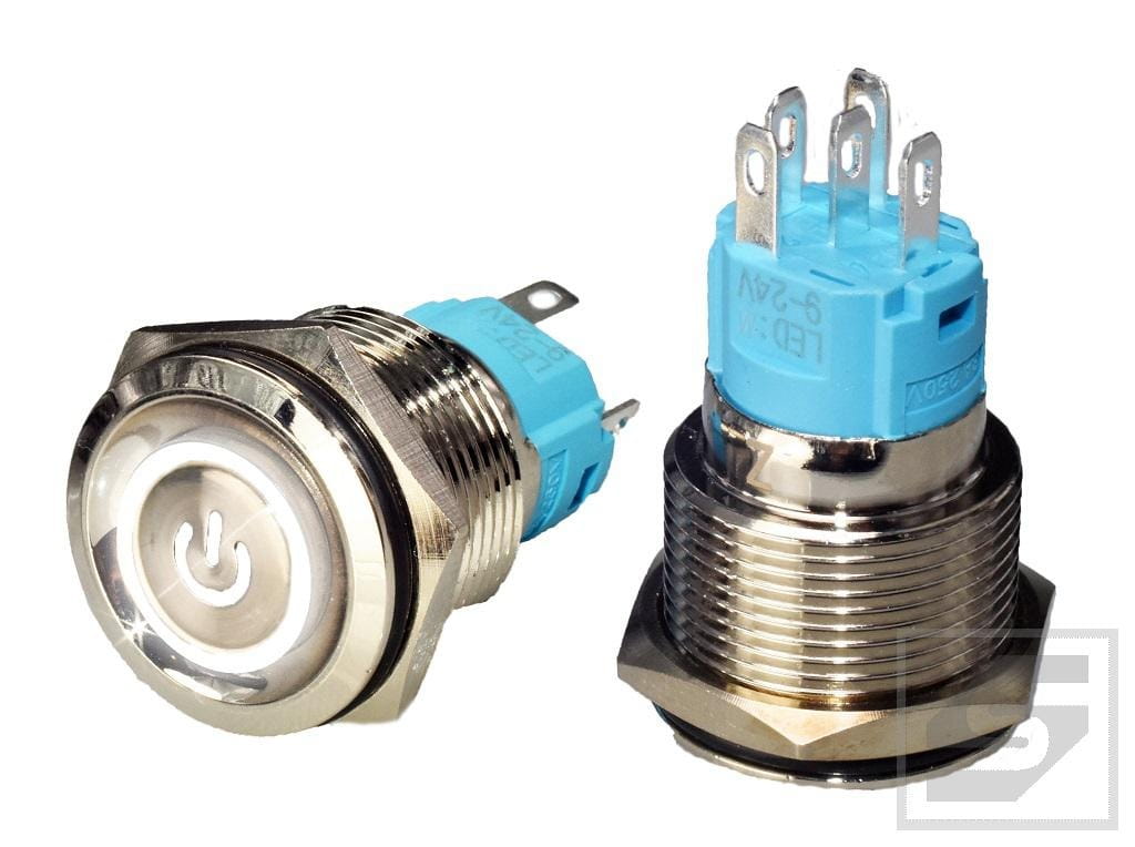 LB19BP-WH; przełącznik przycisk, POWER podśw. 9-24V białe; mont.19mm; bistabilny