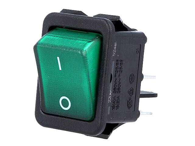 Przełącznik klawiszowy (Rocker Switch), podświetlenie zielone, dwie sekcje, OFF-ON.